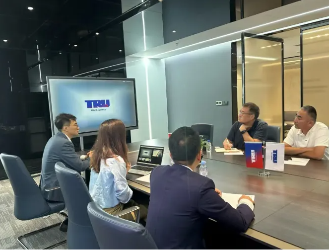 (2)2025年9月10日下午,乌兹别克斯坦国际道路运输协会首席专家Sarvar MUKHAMEDOV先生带队参观走访了TRU Logistics,随后双方围绕各自资源优势、及TIR运输业务展开了深入的交流讨论,并重点讨论了中-吉-乌和中国-阿富汗专线共同合作发展。